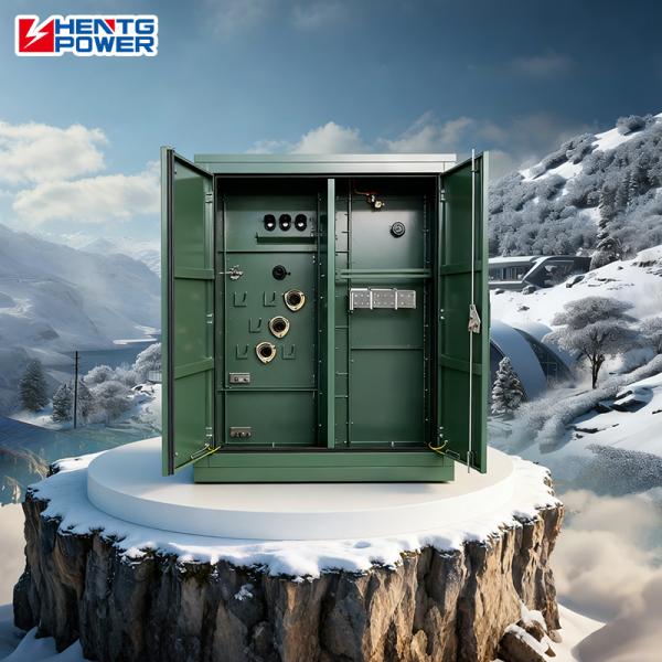 Compact Pad Mounted Three Phase Transformer with Copper Windings. High-performance three-phase transformer featuring copper windings for superior conductivity, high dielectric strength, and efficient on-load/off-load tap changer options.
